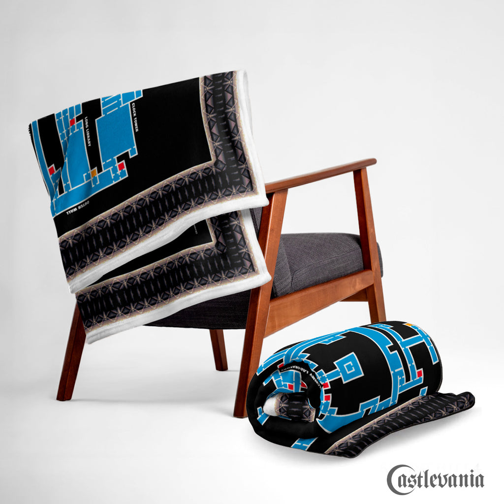 Feeling like a fish outta water when wandering through Dracula's Castle? Don't stress, just snag this super-handy throw blanket with the the castle map so you don't miss a beat. Take him down and banish his reign of terror from the world. This blanket is inspired by the legendary Castlevania: Symphony of the Night and adds a cool, creative touch to your living room. Cozy up this winter!